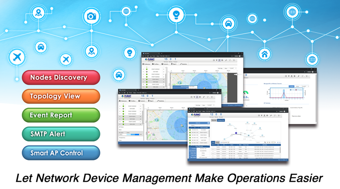 El sistema de gestión de red NMS-500 de PLANET puede supervisar todo tipo de dispositivos de red implementados, como conmutadores administrados, convertidores de medios, enrutadores, puntos de acceso inteligentes, teléfonos VoIP, cámaras IP, etc., compatibles con el protocolo SNMP, el protocolo ONVIF y la utilidad PLANET Smart Discovery. De este modo, permite al administrador gestionar de forma centralizada una red de hasta 512 nodos desde una oficina central, lo que aumenta enormemente la eficiencia de la gestión de la red y la energía. Con su gestión de autenticación de usuarios, el NMS-500 mejora la seguridad de la transmisión de datos en los sistemas de automatización de fábricas modernas.
