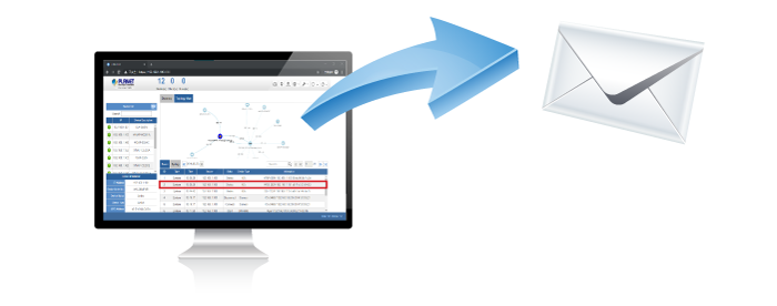 Como el NMS-500 puede ofrecer una vista de topología de la red de los dispositivos alimentados implementados, permite detectar qué dispositivo está en línea (azul) o fuera de línea (rojo). El monitoreo centralizado en tiempo real de estos dispositivos puede ayudar al administrador a conocer el estado actual de estos dispositivos. La función de alarma SMTP está diseñada para enviar una alerta por correo electrónico al administrador a través del servidor SMTP donde se puede encontrar información de syslog una vez que se detecta una anomalía. Esto puede impulsar al personal de MIS a solucionar rápidamente el problema identificado en la red.