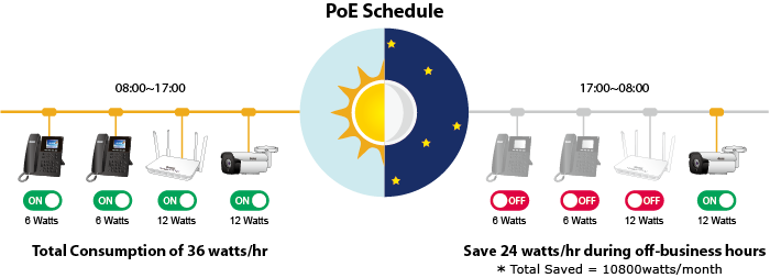 En el marco de la tendencia mundial de ahorro de energía y de la contribución a la protección del medio ambiente en la Tierra, el HPOE-1200G puede controlar eficazmente la fuente de alimentación, además de su capacidad de proporcionar una gran potencia en vatios. La función de "programación PoE" integrada le ayuda a habilitar o deshabilitar la alimentación de energía PoE para cada puerto PoE durante intervalos de tiempo específicos y es una función potente para ayudar a las PYMES o empresas a ahorrar energía y dinero.
