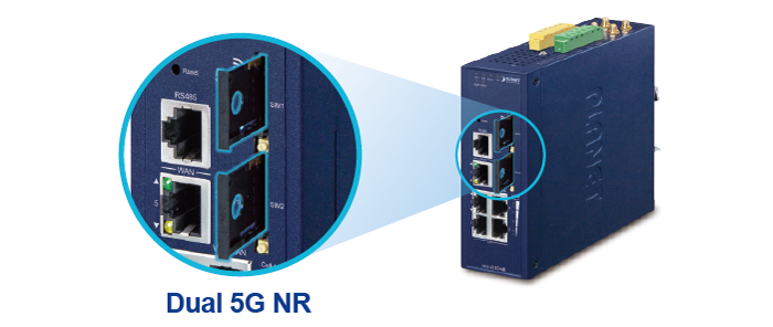 PLANET ICG-2515F-NR es un gateway celular de grado industrial para aplicaciones móviles exigentes, M2M (máquina a máquina) e implementaciones de IoT. Actualizado a la última tecnología celular de 5G NR (nueva radio), el ICG-2515F-NR puede proporcionar acceso de banda ancha ultrarrápido con la red celular 5G. El ICG-2515F-NR también cuenta con cuatro puertos Ethernet (3 LAN y 1 LAN/WAN), un puerto de fibra (LAN/WAN), puerto serial (RS485), interfaces DI y DO y tecnología VPN, todo en una carcasa de metal compacta pero resistente. Establece una conexión celular rápida entre dispositivos equipados con puerto serial y Ethernet. El ICG-2515F-NR es particularmente ideal para la automatización industrial, la fábrica digital y otras aplicaciones industriales.