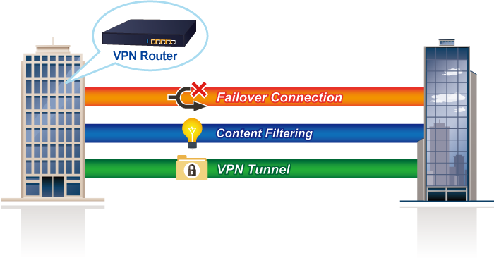 El VR-300F y el VR-300FP brindan seguridad y privacidad de datos completas para acceder e intercambiar los datos más confidenciales, función VPN IPSec incorporada con cifrado DES/3DES/AES y autenticación MD5/SHA-1/SHA-256/SHA-384/SHA-512, y mecanismo de servidor GRE, SSL, PPTP y L2TP. La capacidad VPN completa del VR-300FP hace que la conexión sea segura, más flexible y más capaz.