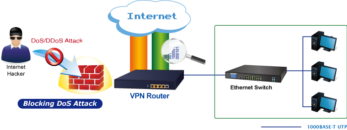 El VR-300F y el VR-300FP tienen un firewall SPI (inspección de paquetes con estado) incorporado y funciones de mitigación de ataques DoS/DDoS que brindan alta eficiencia y amplia protección para su red. Por lo tanto, las funciones de servidor virtual y DMZ pueden permitirle configurar servidores en la Intranet y aún así brindar servicios a los usuarios de Internet.