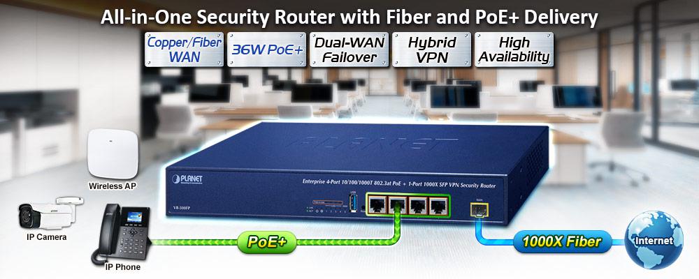 La innovación de Internet ha creado enormes oportunidades a nivel mundial para el comercio electrónico y el intercambio de información. Se ha vuelto esencial que las empresas se centren más en los problemas de seguridad de la red. La demanda de seguridad de la información y conexión inalámbrica se ha convertido en la principal preocupación de las empresas. Para satisfacer esta demanda, PLANET ha lanzado los enrutadores de seguridad VPN todo en uno VR-300F y VR-300FP que incluyen varias categorías principales en sus implementaciones de seguridad de red: interfaz WAN de cobre/fibra, ciberseguridad, protección de seguridad de firewall SPI, auditoría de políticas (filtrado de contenido, túnel VPN y filtrado MAC/IP), controlador de AP, portal cautivo, RADIUS y fácil administración (asistente de configuración, servidor DHCP y panel de control). Además, sus funciones de conmutación por error de WAN dual, equilibrio de carga saliente y alta disponibilidad pueden mejorar la eficiencia de la red, mientras que la interfaz basada en la web proporciona una experiencia de usuario amigable y consistente.