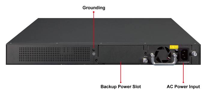 El XGS-6350-24X4C está equipado con una unidad de fuente de alimentación extractiva de 100~240 V CA, por lo que es fácil reemplazar la energía para los usuarios. Además, el XGS-6350-24X4C reserva otra ranura de alimentación de respaldo en el panel trasero y los usuarios pueden agregar la segunda fuente de alimentación CA o CC a la instalación de fuente de alimentación redundante. La alimentación CA o CC es opcional. El sistema de alimentación redundante está diseñado específicamente para manejar las demandas de instalaciones de alta tecnología que requieren la mayor integridad de energía.