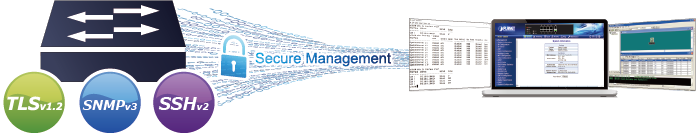 Además, el GS-4210-48T4S ofrece una administración remota segura al ser compatible con conexiones SSHv2, TLSv1.2 y SNMP v3 que cifran el contenido de los paquetes en cada sesión.