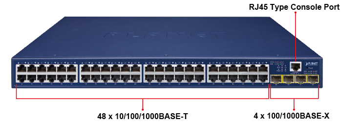 Para una gestión eficiente, el GS-4210-48T4S está equipado con interfaces de gestión de línea de comandos, web y SNMP.