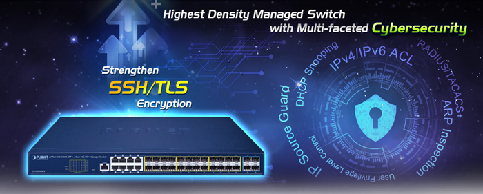 El GS-5220-16S8CR admite los protocolos SSHv2 y TLS para brindar una protección sólida contra amenazas avanzadas. Incluye una variedad de funciones de ciberseguridad como DHCP Snooping, IP Source Guard, Dynamic ARP Inspection Protection, administración de cuentas de usuario RADIUS y TACACS+, autenticación SNMPv3, etc. para complementarlo como una solución de seguridad integral.
