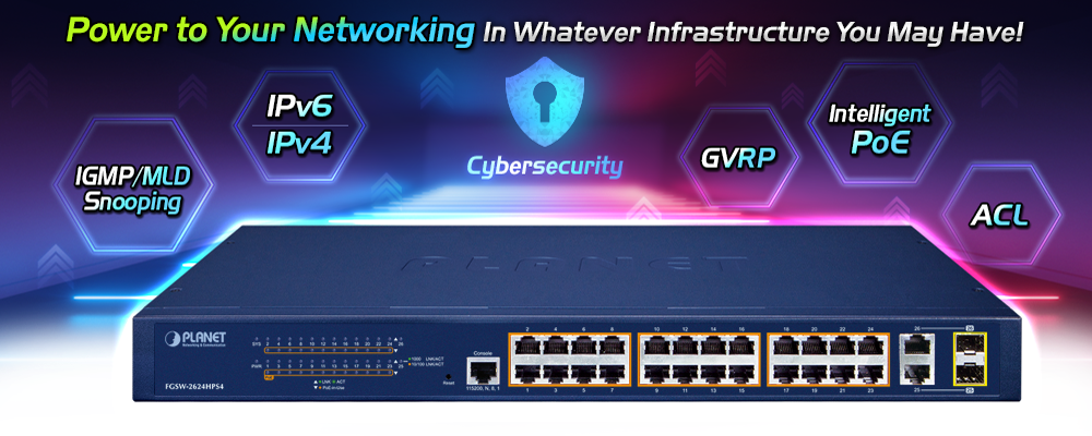 El conmutador administrado PoE+ de capa 2 FGSW-2624HPS4 de PLANET, recientemente revisado, está diseñado para empresas e industrias donde se puede administrar de forma central una red de PD. Las funciones de administración del conmutador se han mejorado para incluir administración inteligente de PoE, administración de IPv6, ACL, GVRP y más.