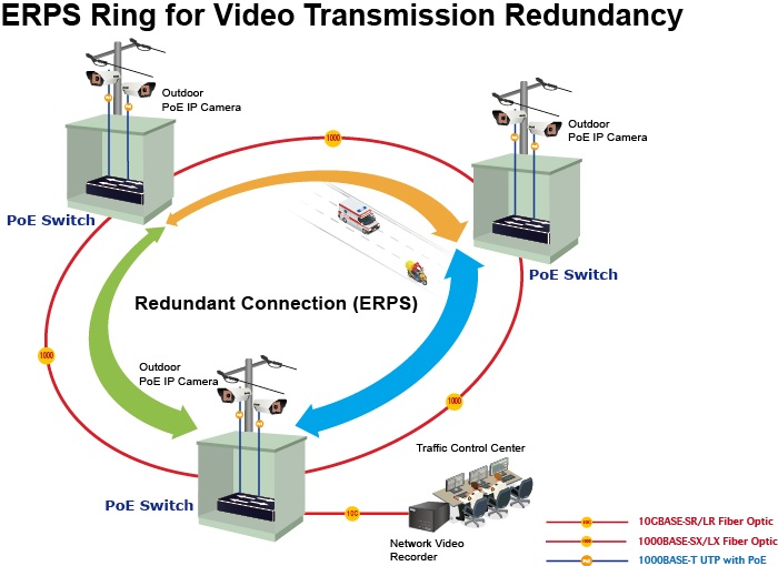 El GS-4210-24UP4X admite la tecnología de anillo redundante y cuenta con una capacidad de autorrecuperación rápida y sólida para evitar interrupciones e intrusiones externas. Incorpora tecnología avanzada ITU-T G.8032 ERPS (Ethernet Ring Protection Switching), protocolo Spanning Tree (802.1s MSTP) en la red del cliente para mejorar la confiabilidad del sistema y el tiempo de actividad en varios entornos.
